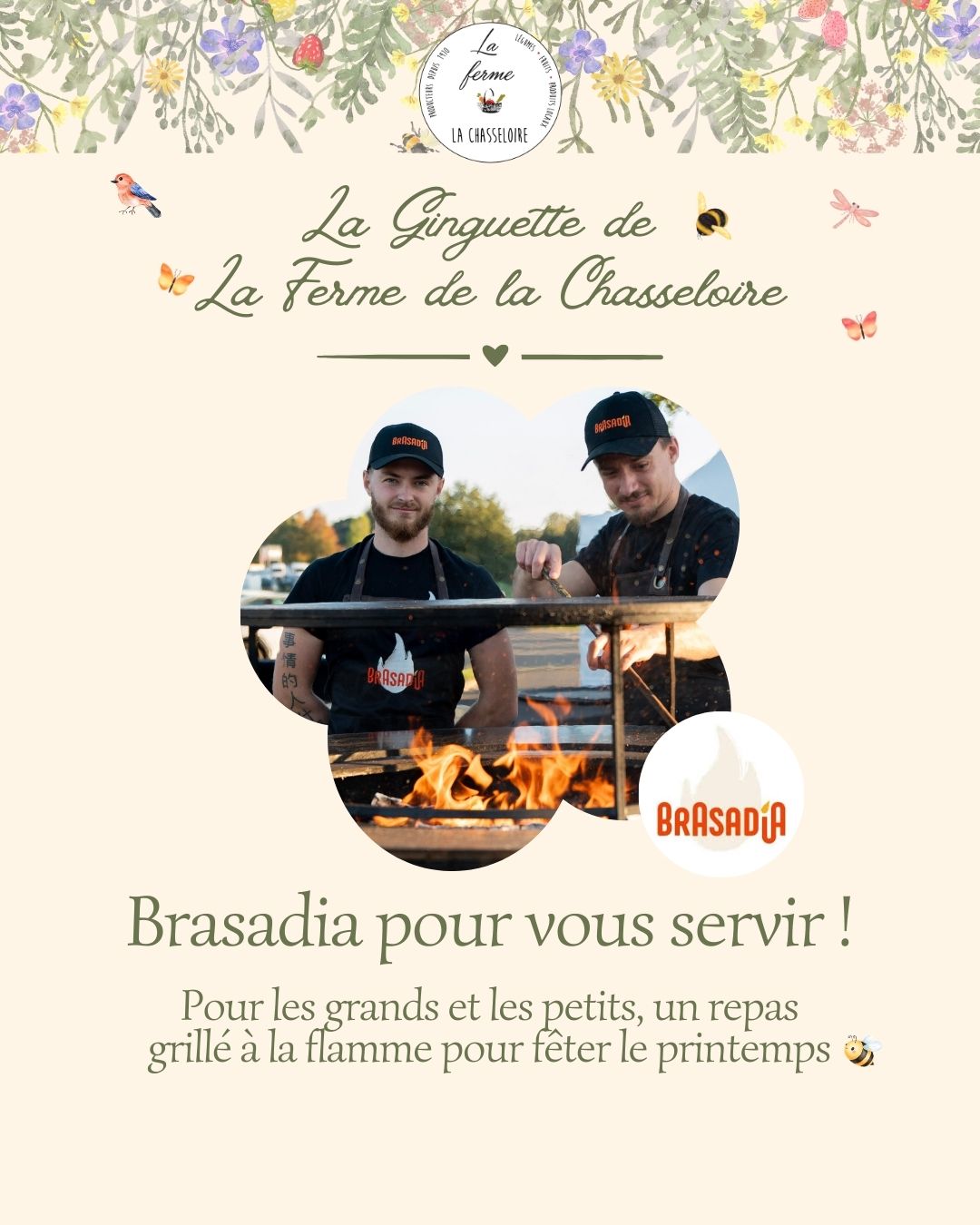 Réservez votre repas au brasero pour la Fête du Printemps du 25 avril 2026.